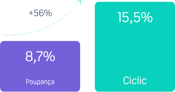 Historicamente o fundo em que a Ciclic investe o seu dinheiro, rendeu cerca de 56% a mais do que a poupança* nos últimos 2 anos.